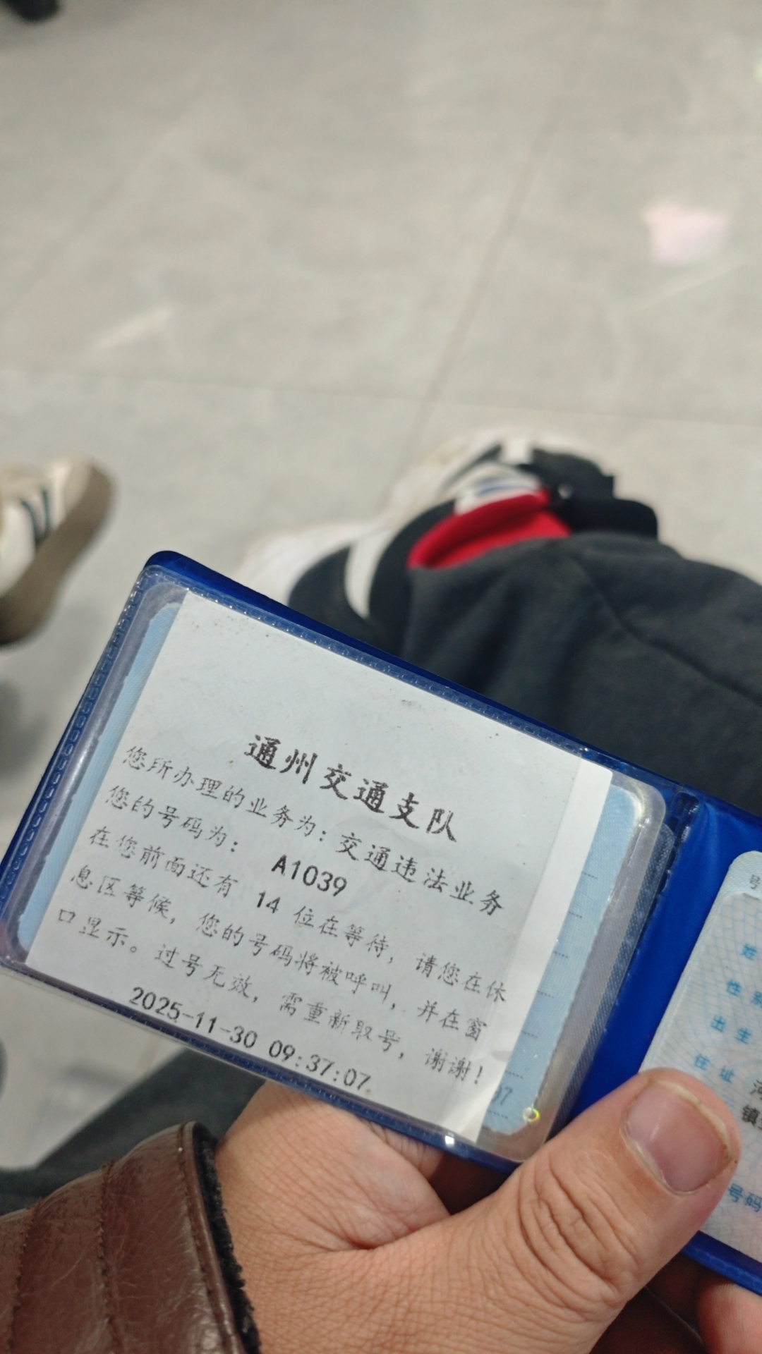昨天给老妈办理出院,顺便把摩托的违章处理下,整整半年了,因为是交通设备拍的,我的又是公户,所以12123上没有提醒,只能去执法站,我去的是通州执法站,进门有人引导,会问你办啥业务(蜀黍热情的我以为这里是银行),然后用身份证刷下,领个小票,然后等即可,处理完违章又重新领号去领年检标,也是一会完事。